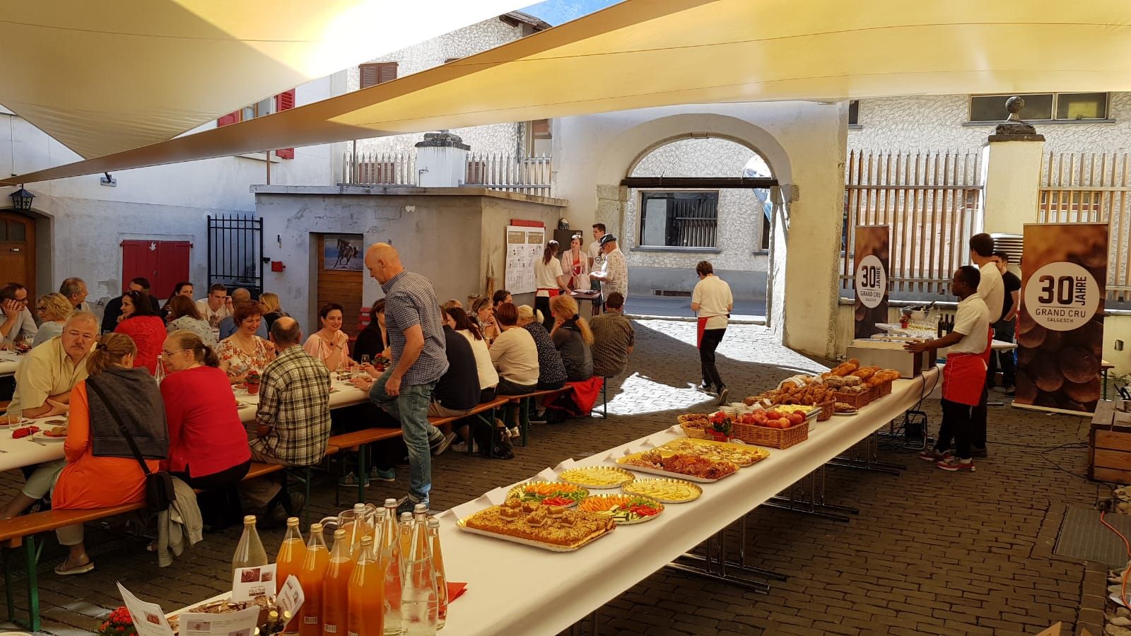 À l’occasion du jeudi des Caves Ouvertes en Valais, la « Wine & Brunch Tavolata » vous invite à déguster les vins de Salquenen ainsi que d’autres spécialités du terroir. Dans une ambiance conviviale, profitez d’une grande tablée dressée au cœur de la cour historique de ce village viticole.