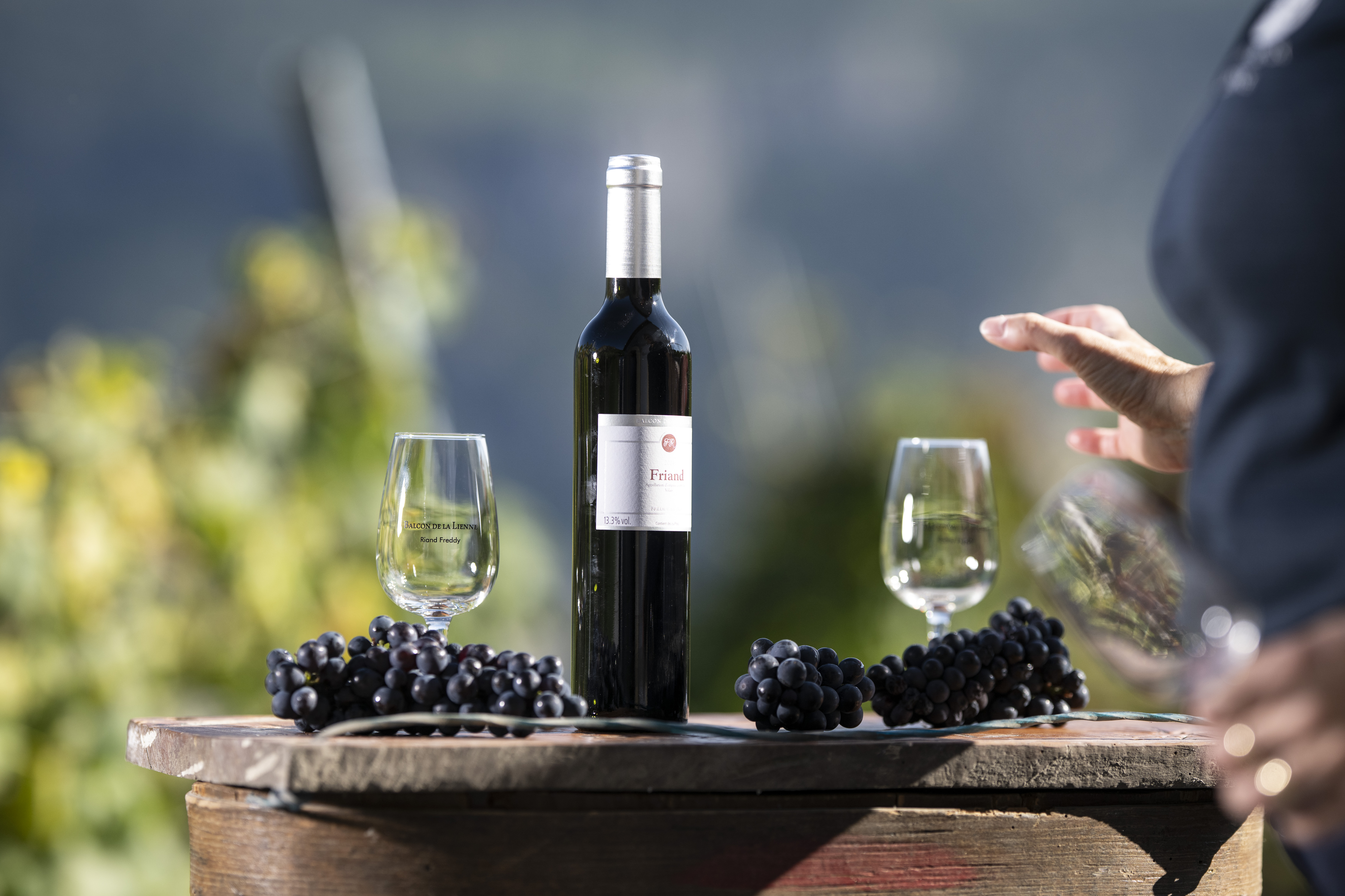 Les vins sont élevés par Freddy et Corinne Riand avec beaucoup d’amour et de passion. Ils effectuent tous les travaux de la vigne à la bouteille… Leur gamme de vins : Fendant, Oeil-de-Perdrix, Pinot Noir, Diolinoir et l'assemblage de rouge, le Friand.
