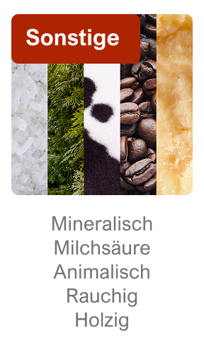 – Tertiäraromen, die sich bei der Reifung des Weins entwickeln.
